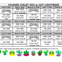 Planning des activités de la ludothèque pour les vacances de Juillet 2019