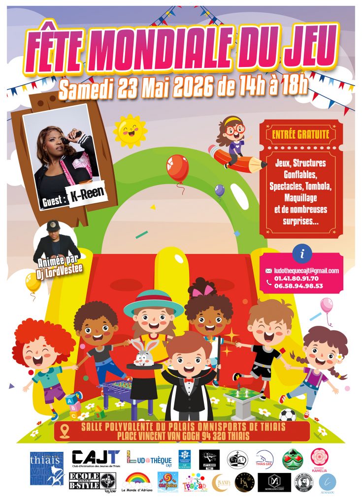 Le CAJT Ludothèque fait un appel à talents pour la scène de la Fête mondiale du jeu qui aura lieu le Samedi 23 Mai 2026 de 14h à 18h au Palais Omnisports de Thiais! Nous proposons une scène ouverte à tous les talents: chant, danse, musique, humour, magie… La scène est à vous ! (temps Lire plus …