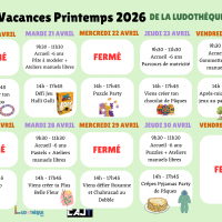 Le planning d’activités à la ludothèque pour les vacances de Printemps 2026