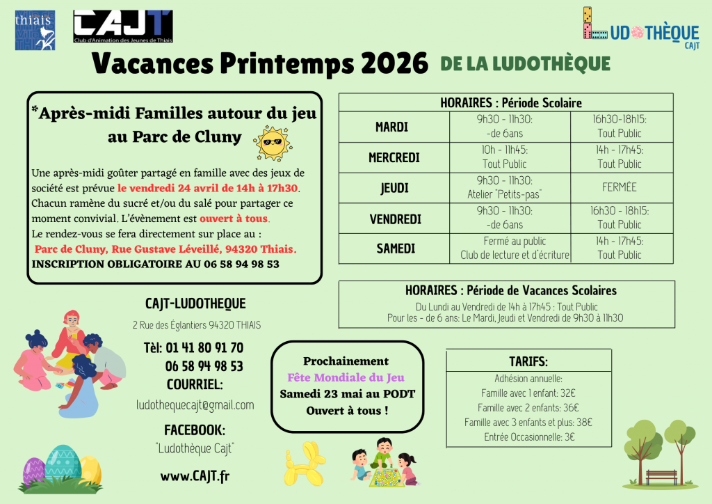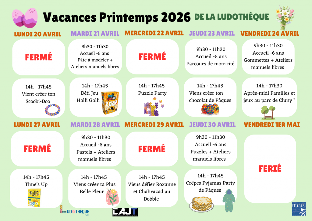 Au programme pour ces vacances de Printemps 2026 à la ludothèque: