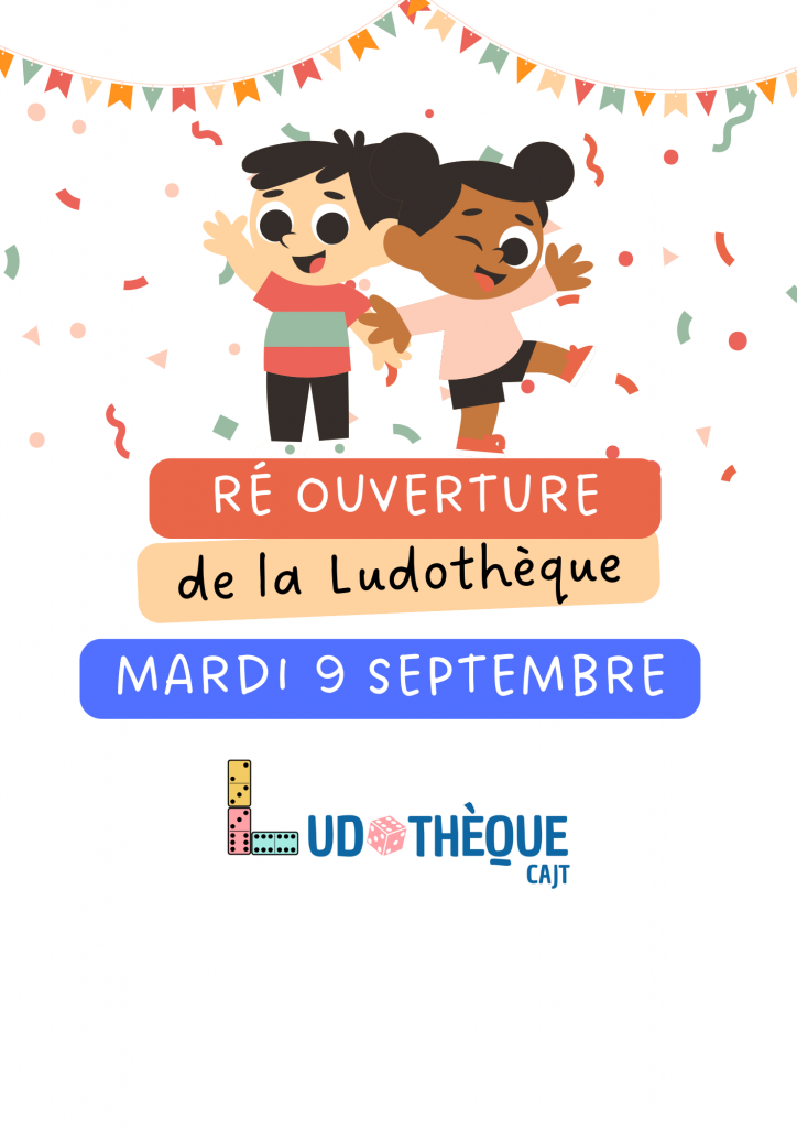 Nous vous informons que la ludothèque réouvrira ses portes le Mardi 9 Septembre 2025 aux horaires habituelles.
